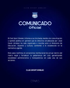 Emelec oficializa la inscripción de su directiva encabezada por José David Jiménez para el periodo 2026-2030