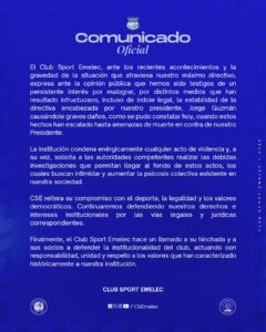Emelec denuncia amenazas contra su presidente y rechaza actos de violencia