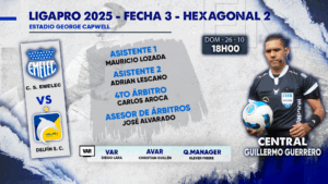 Cuerpo arbitral de Emelec vs Aucas por la fecha 12