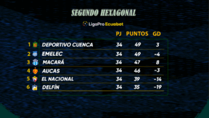 Emelec se mantiene segundo en la tabla del segundo hexagonal